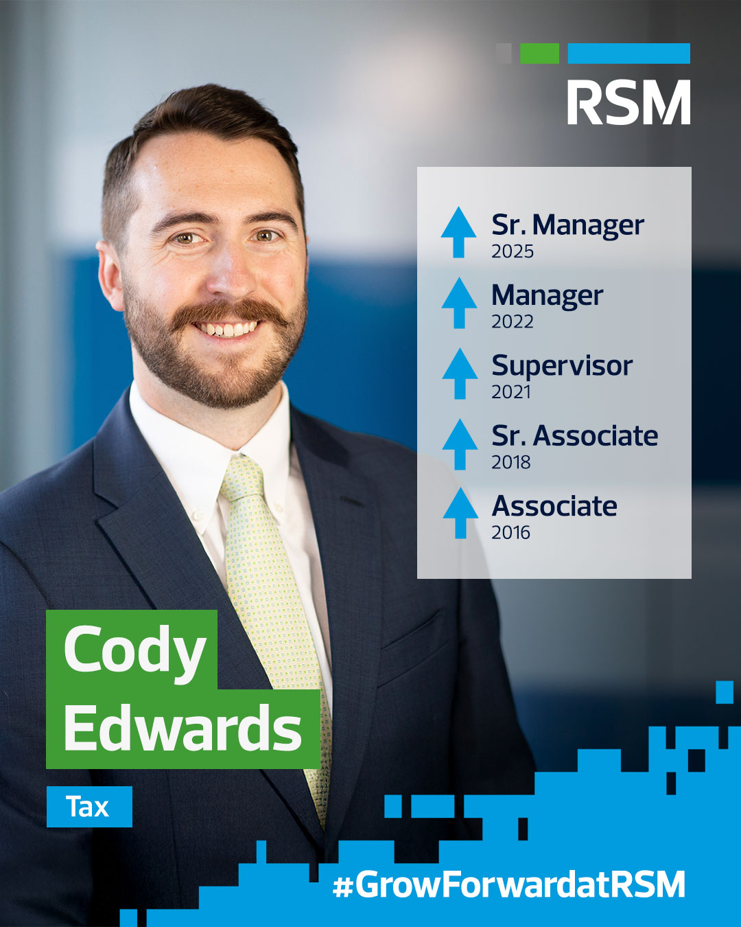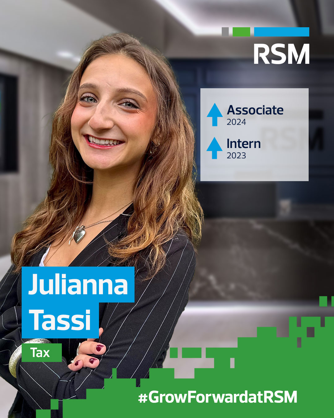 Being in athletics my whole life, I’ve always thrived being a part of a team which is one of the many reasons I love my Job at RSM. Having people above me, below me, and at my same level all striving for the same goal of benefiting our clients has allowed me to grow personally and professionally by learning from each other and having the support system needed to thrive! I find employment from problem-solving and being able to help clients with all the different nuances they may face with their taxes.
