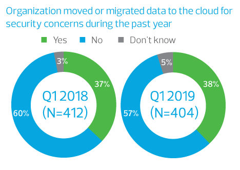 The RSM US Middle Market Business Index data demonstrates the gradual migration of middle market data to the cloud. The survey shows that 38 percent of respondents moved data to the cloud as a result of security concerns in the last 12 months.