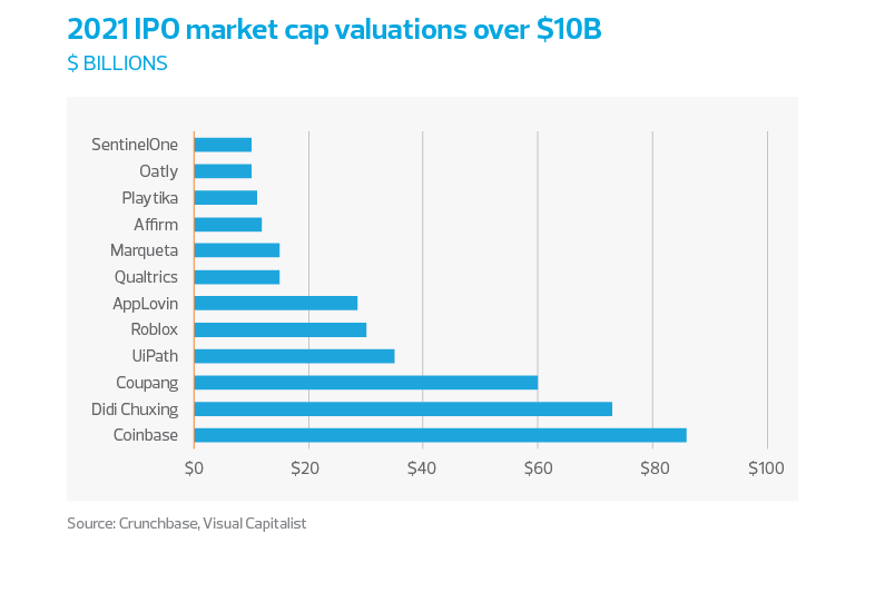 Initial public offerings in the technology sector have performed quite well so far this year, particularly in the fintech and biotech sectors. Some of the most notable tech IPOs to date include Coinbase, UiPath, Affirm and Roblox.