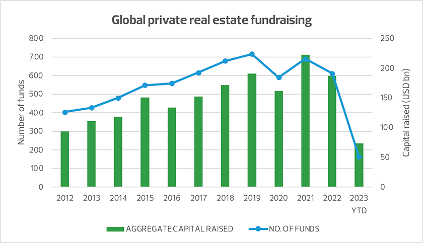 Typically, open-end structures offer investors the benefit of more readily available liquidity, as the funds are able to continually raise new capital by offering quarterly subscriptions and redemptions. However, fundraising has been losing steam at a rapid pace, with a 19% drop in capital raised in the first half of 2023 compared to the last half of 2022.