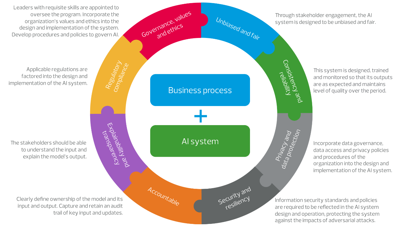 In addition to adopting a governance framework, a company should ensure several stakeholders from across the enterprise are involved in guiding AI strategies. "Generative AI systems are going to transform business processes across various functions within the organization, and as a result it will have far-reaching impact,” says Thakkar. “Therefore, instead of relying solely on input from technology stakeholders, active participation from company leadership is a must for responsible AI adoption. For example, your CEO can provide input on governance, values and ethics, while the CFO can help manage risks related to financial reporting errors.”